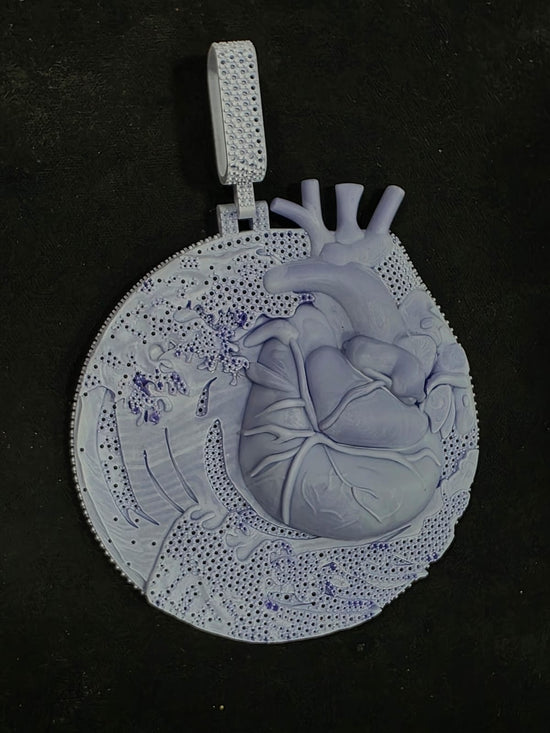 The creation of this pendant began with the client’s unique idea, which was carefully transformed from an initial sketch into a precise CAD model. At this stage, every angle, curve, and proportion is digitally refined to ensure the design flows naturally and maintains perfect symmetry. The CAD allows us to preview the 3D heart pendant in three dimensions, capturing its complexity and character before production begins. This step not only guarantees accuracy but also provides the client with a clear visualization of how their vision will come to life, ensuring confidence in the final masterpiece.