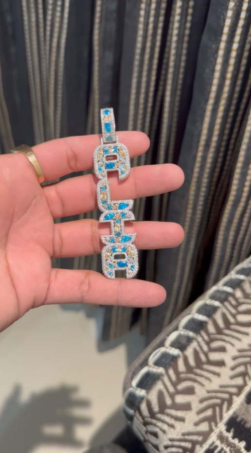 What started as a vision soon became reality, a bold request from a client who wanted their name transformed into an unforgettable pendant. This was not just jewelry, but a statement piece, designed to embody confidence, celebrate identity, and radiate a unique sense of style with every glimmer. Each curve, each stone, and each detail was thoughtfully crafted to ensure that the pendant tells a story of pride, personality, and power.