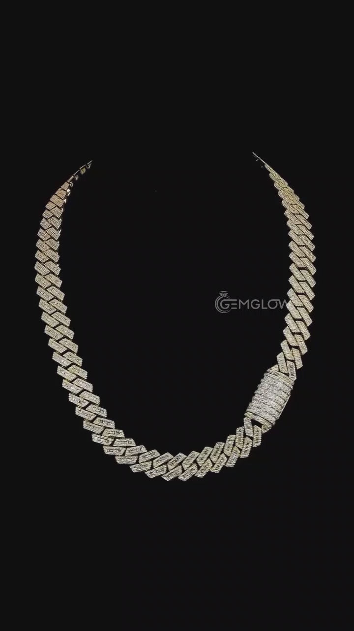 20mm Iced Out Cuban Diamond Chain, 925 Sterling Silver, Baguette Necklace, Miami Cuban Chain, Iced Out Chain, Birthday gift, Hiphop Cuban chain
