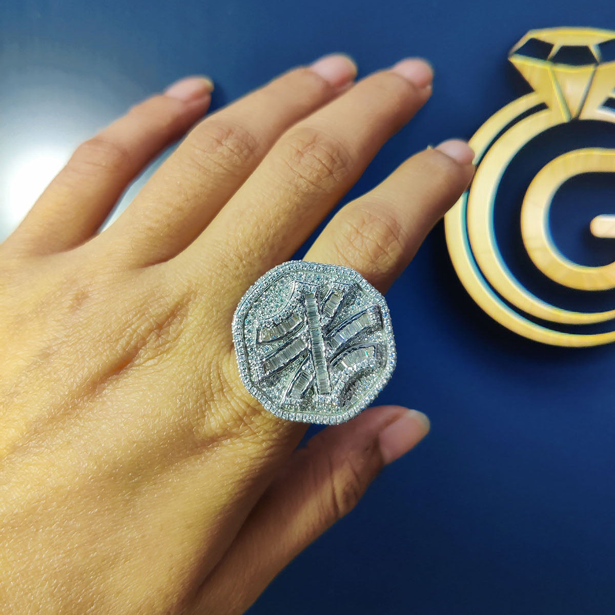 Real Moissanite Baguette Ring, Iced Out Ring, Bling Hip Hop Style Ring, Hip Hop Jewelry Gift, VVS1 Moissanite Letter Ring