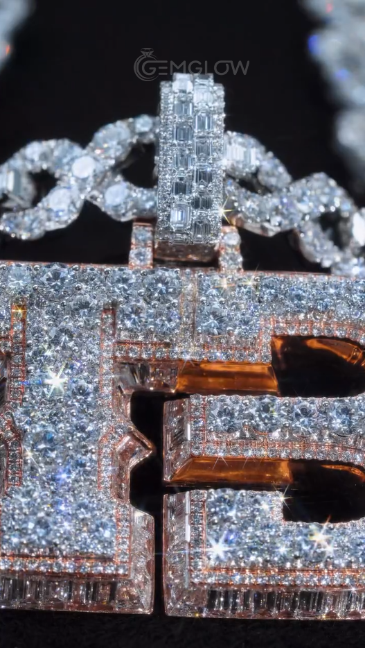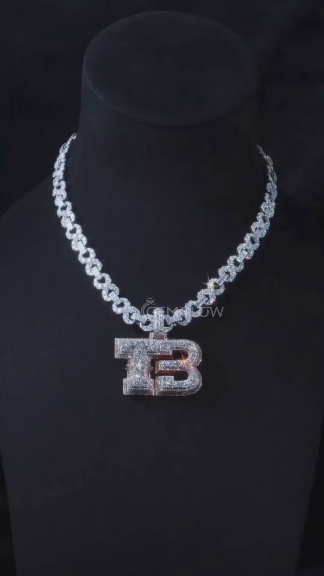 Custom Iced Out Letter Pendant Necklace, Silver Moissanite Hip Hop Chain, VVS1 Moissanite Diamond Infinity Cuban Link Chain, Hip Hop Jewelry, Luxury Jewelry, Hip Hop Rapper Necklace, Birthday Gift, Iced out Infinity Cuban Link Chain, Gift for Him
