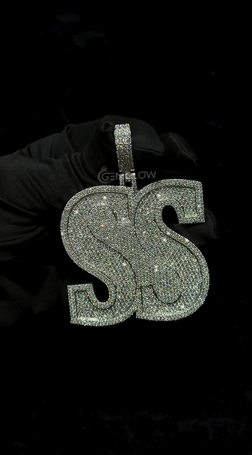 Custom Made S Letter Hip Hop Pendant, 925 Sterling Silver Letter Pendant, VVS1 Moissanite Pendant, Rapper Necklace, Rapper's Hip Hop Jewelry, Men's Hip Hop Letter Pendant, Hip hop Jewelry For Birthday Gift, Custom Letter Pendant, Hip Hop Pendant