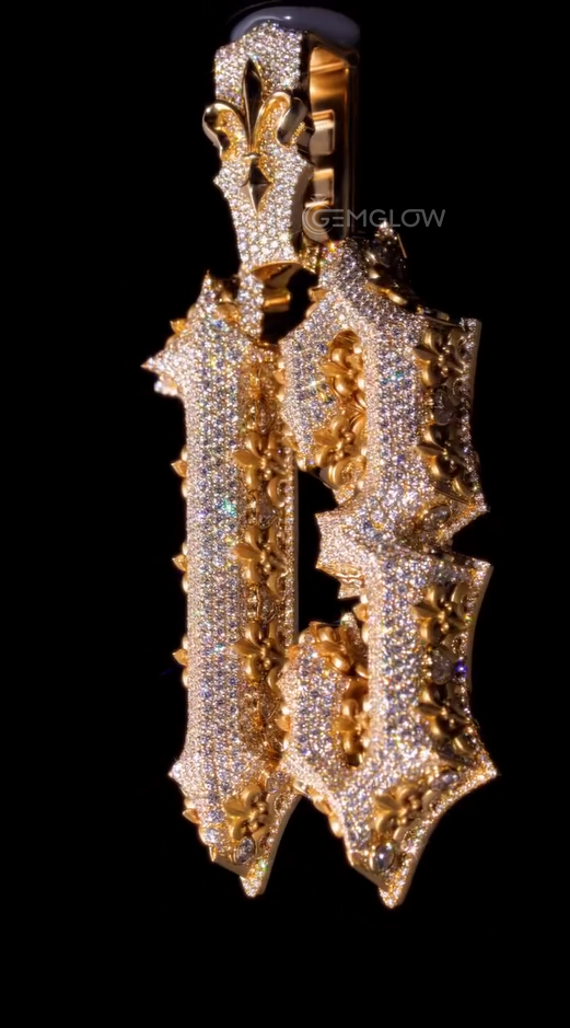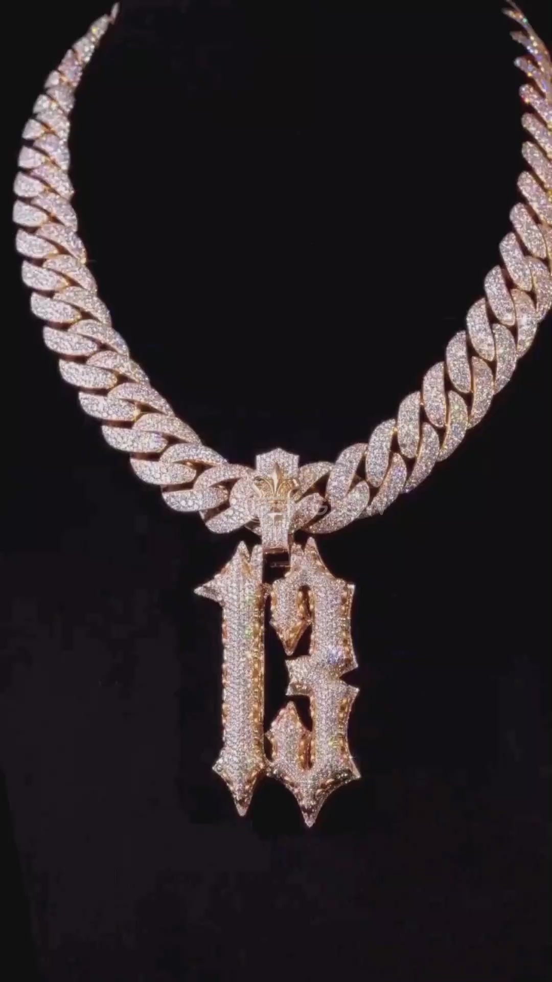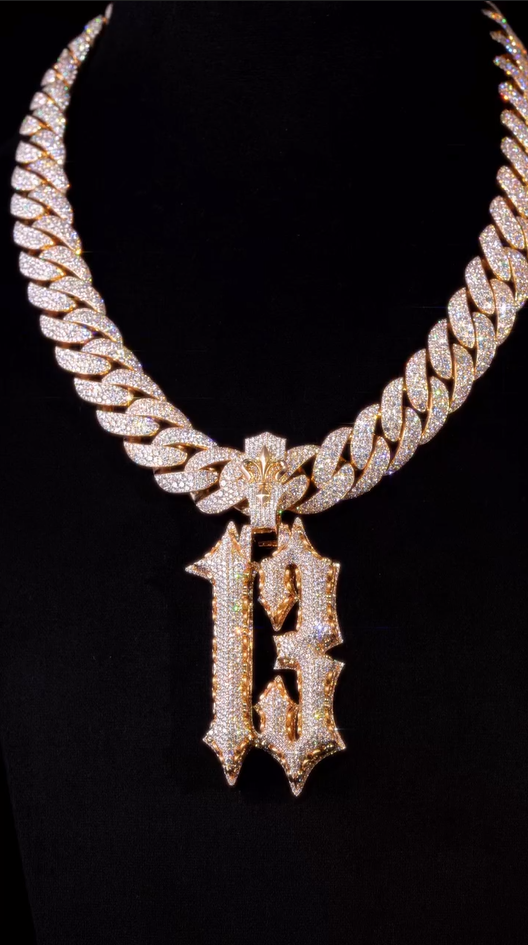 Custom Moissanite Number Pendant, VVS Moissanite Cuban Chain, 925 Rose gold Plated Diamond Necklace For Her, Luxury Gifts, Rapper Miami Cuban Chain, Hip Hop Jewelry, Customized Pendant, Fully Iced Out Round Moissanite Pendant, Custom Letter Pendant, Men's Hip Hop Letter Pendant