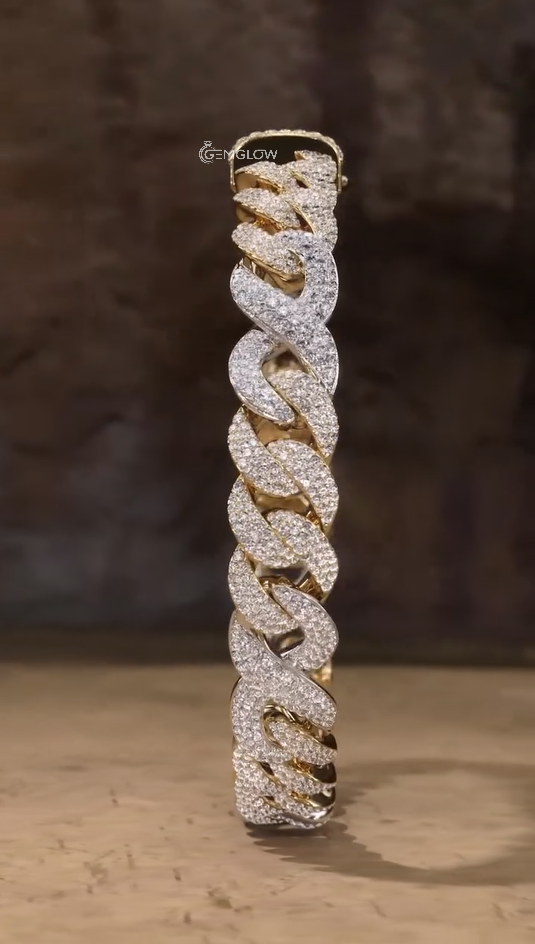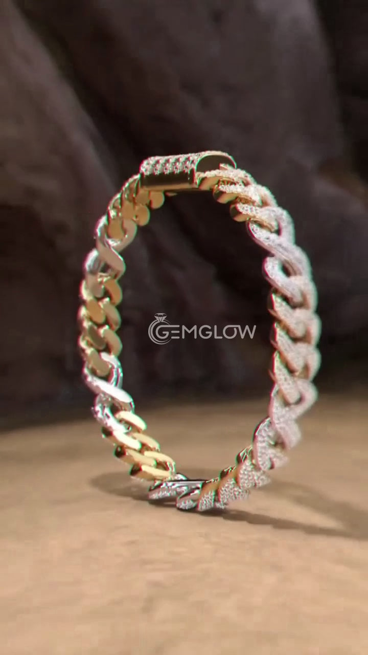12MM Moissanite Diamond Bracelet, Iced Out Bracelet For Men, Hip Hop Bracelet, Yellow Gold Finish, Diamond Bracelet, Fully Iced Out Hip Hop Bracelet, Iced Out Cuban Link Bracelet