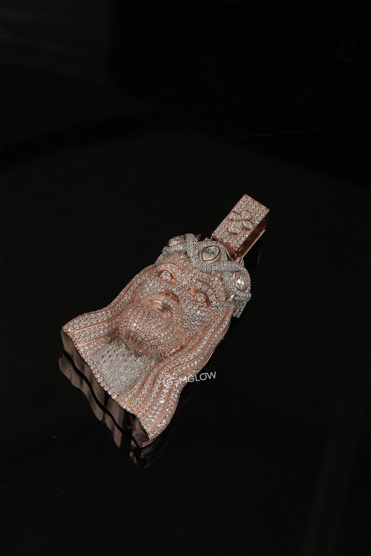 Handmade Jesus Head Moissanite Pendant in 14K Rose Gold Plated 925 Silver. A Perfect Unisex Christmas Gift.