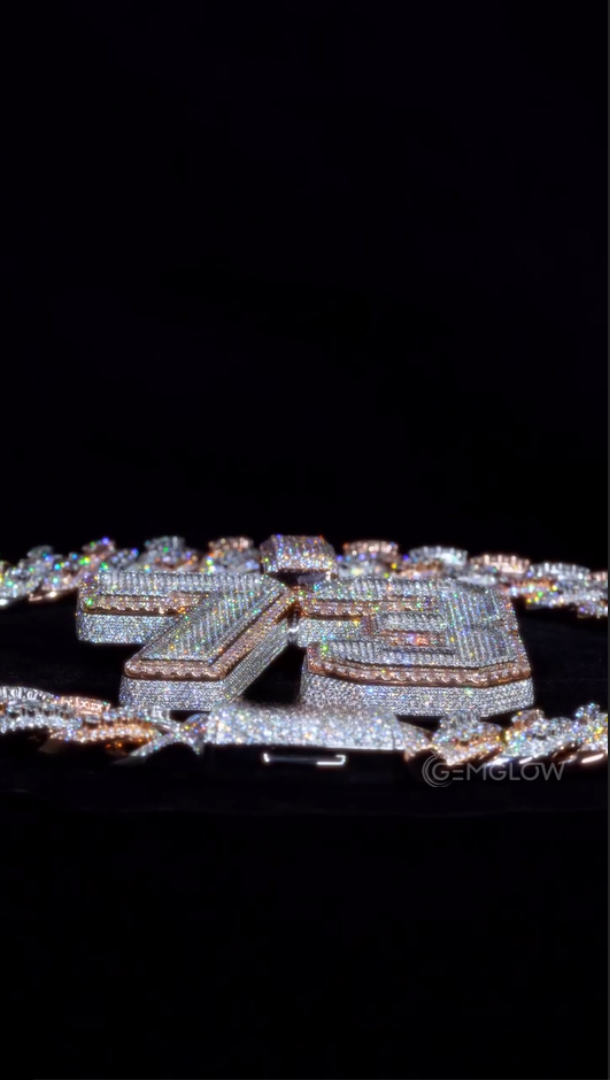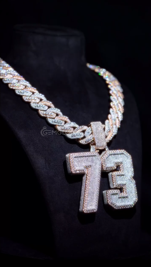 Fully Iced Out Moissanite Pendant, Rose Gold Plating Moissanite Hip Hop Necklace, VVS1 Moissanite Pendant, 925 Silver and Rose Gold pendant, Hip hop jewelry, Gift for him, Custom letter pendant, Men's Bling Jewelry, Unisex Hip Hop Jewelry, Rapper Miami Cuban Chain for man, Iced Out Cuban Necklace