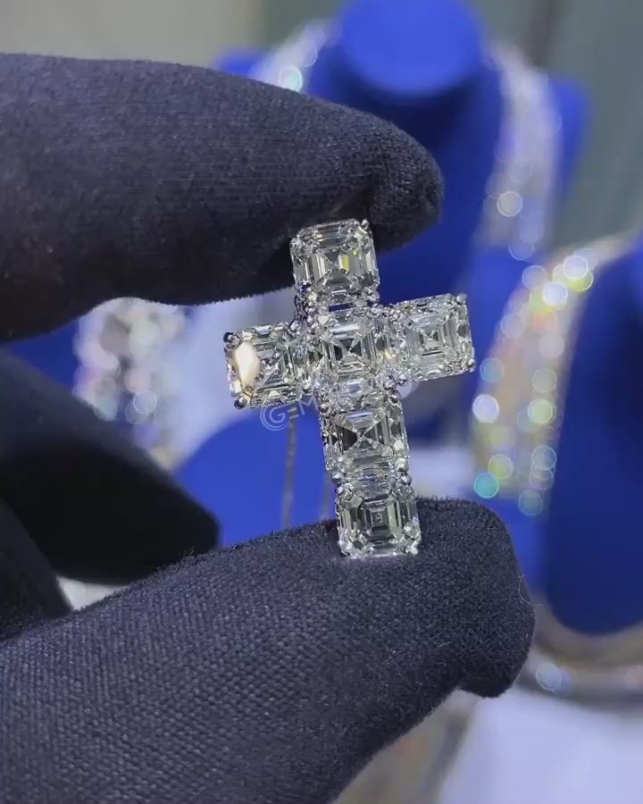 Iced VVS Moissanite Cross with Asscher Cuts