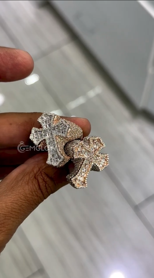 Iced out cross ring with VVS baguette & round moissanite diamonds, 925 silver hip hop jewelry for men and women, bold bling statement rapper ring.