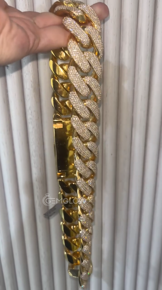 20mm Iced Out Cuban Link Chain, VVS Moissanite Diamonds unisex Yellow Gold Plated, hip hop jewelry, Miami Cuban prong, 925 Sterling Silver Men's and Women's Miami Cuban Link Chain, Rapper Miami Cuban Chain, Hip hop necklace, Hip Hop Rapper, Birthday Gift For Her