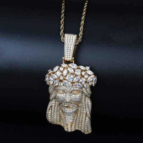 Micro Pave Zircon Jesus Face Pendant – Iced-Out Jesus Head Necklace, a Hot & Popular Men’s Bling Hip-Hop Chain for Maximum Style and Shine.