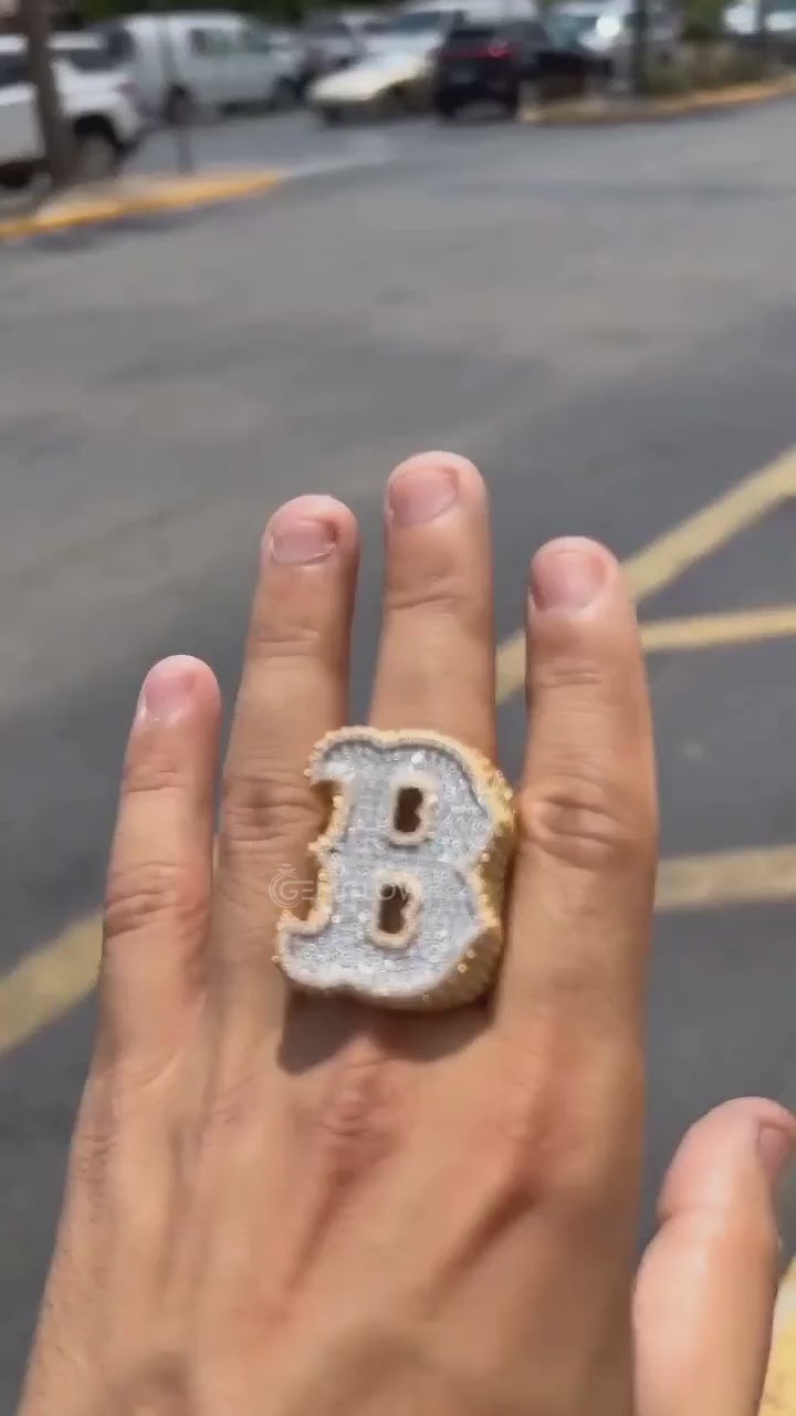 Iced out Initial 'B' Letter Ring-VVS Moissanite Diamond Men's Ring Rappers Ring-Hip Hop Jewelry For Gift Custom Moissanite Ring, Gift For Him, Men's Ring B Letter Ring, Hip Hop Letter Ring Custom Moissanite Ring
