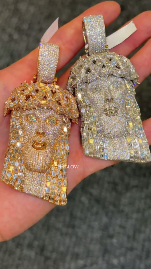 This Iced Out Jesus Face Pendant an icy diamond design, comes as a custom religious pendant, and works as a unisex charm, making it perfect for bling hip-hop men’s jewelry.