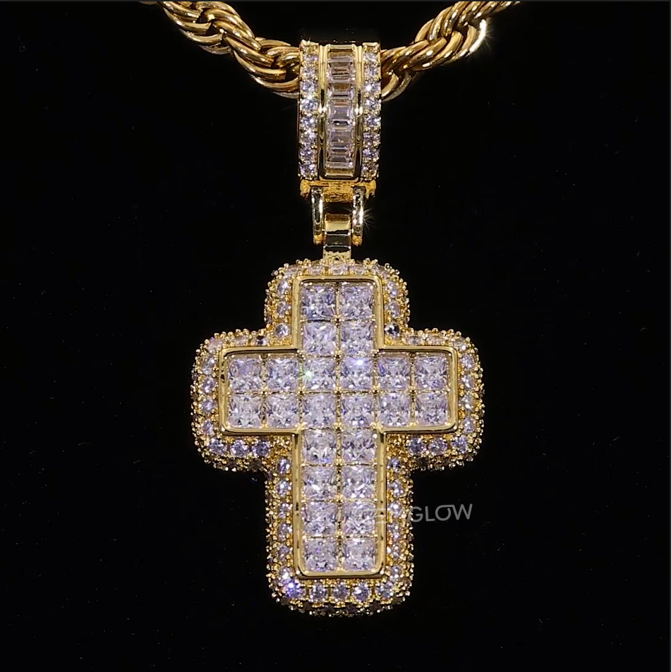 Christian faith pendant, iced out Moissanite cross pendant, anniversary gift cross necklace, statement Christian faith necklace, bling religious cross pendant, men’s iced out cross pendant