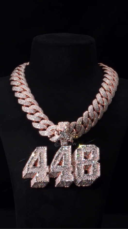 Fully iced out custom number pendant in 925 silver with moissanite diamonds. Bold hip hop jewelry for men, perfect rapper necklace or birthday gift.