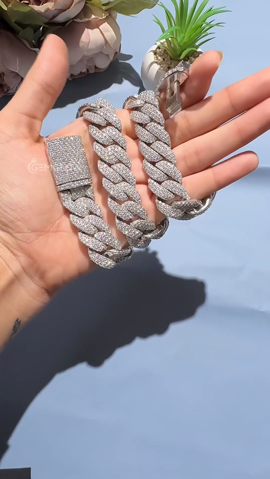 18mm Moissanite diamond Cuban link chain for men. Fully iced out hip hop necklace with brilliant shine, bold rapper style, perfect gift for him.