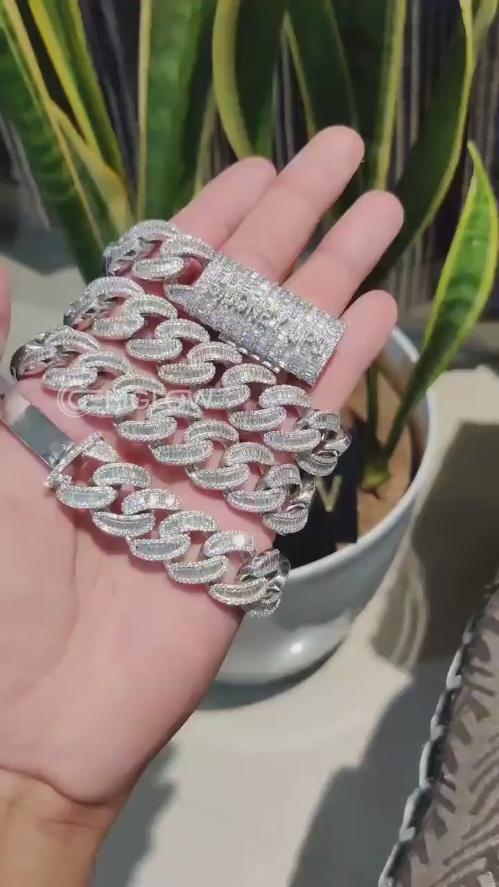 18mm Iced Out Cuban Diamond Chain, 925 Sterling Silver, VVS Round & Baguette Moissanite Miami Cuban Chain, Cuban Link Chain, Bling Rapper Jewelry, Round and Baguette Diamond Hip Hop Chain, Baguette Cuban Chain For Men