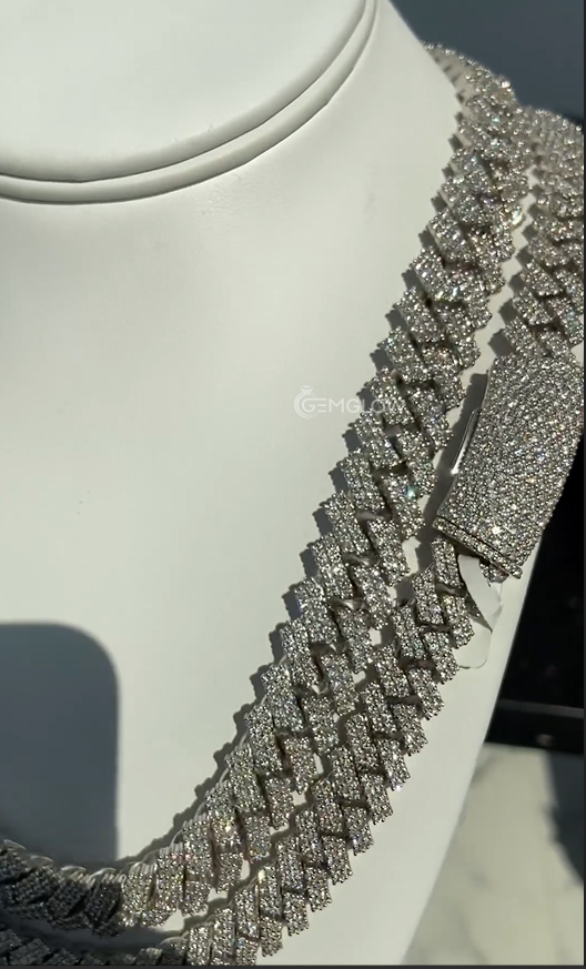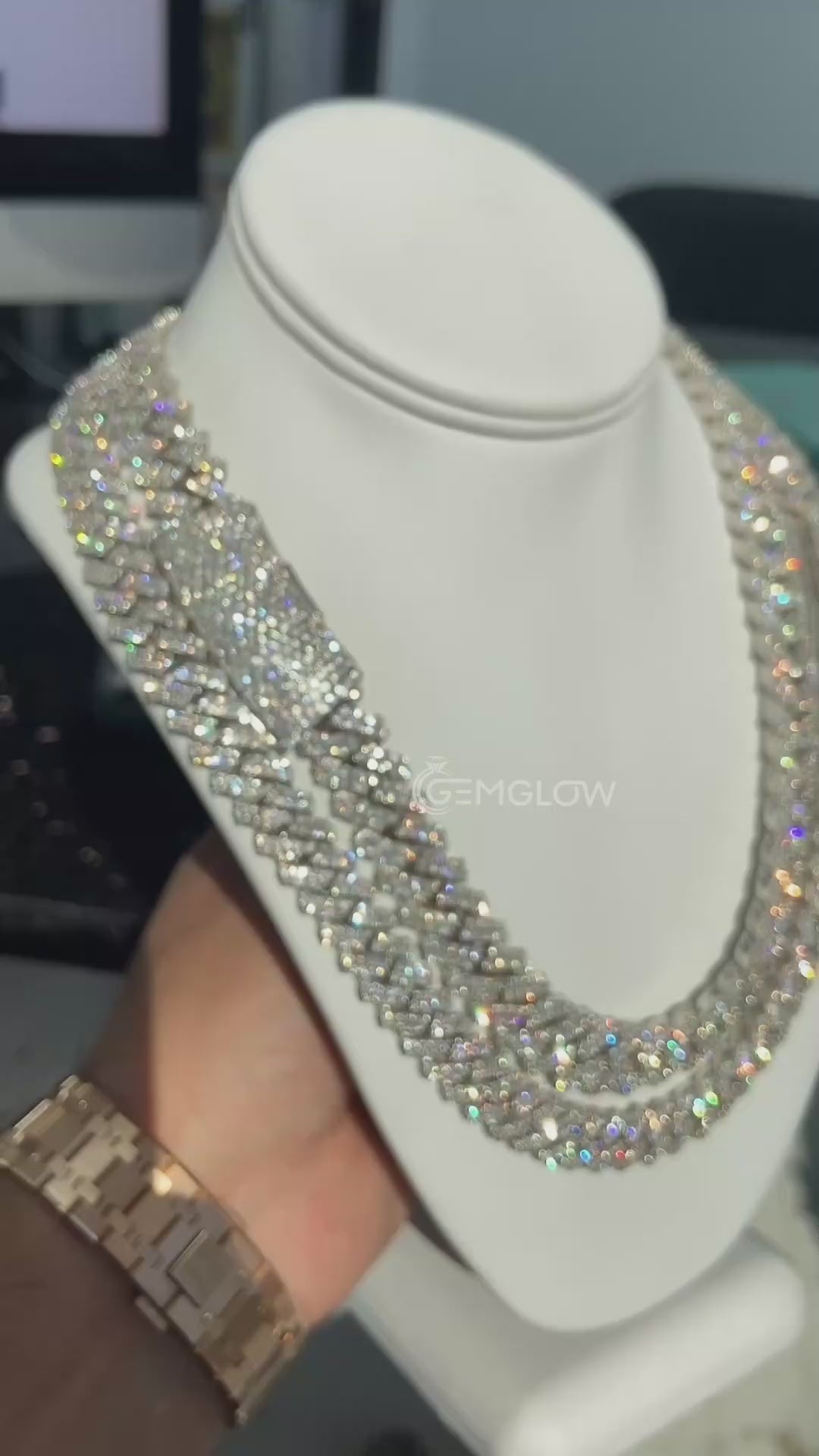 Iced out Cuban link chain with VVS moissanite diamond, round cut diamond sparkle Chain, solid 925 silver hip hop chain for men Moissanite Diamond Cuban Link Chain.