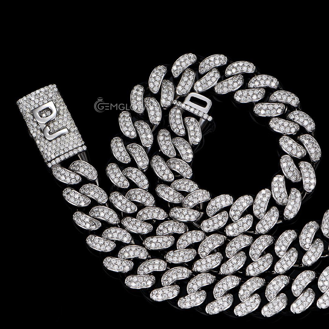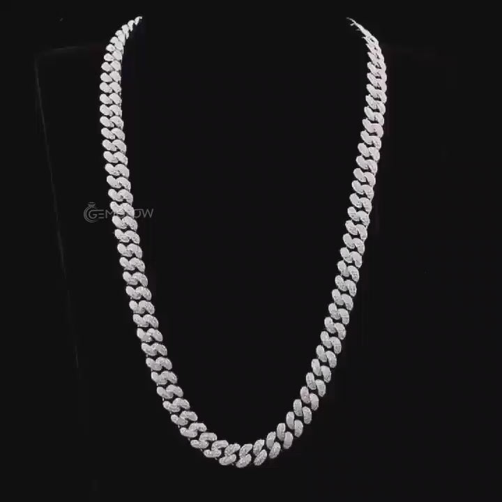 Iced out Cuban link chain with VVS1 moissanite diamonds, solid 925 silver men’s hip hop necklace, rapper jewelry, custom bling chain, gift for her, Fully iced out Cuban link chain with VVS moissanite round diamonds, bold hip hop jewelry for men and women, perfect rapper streetwear bling piece