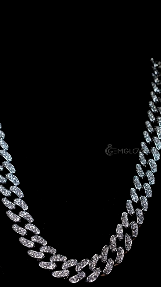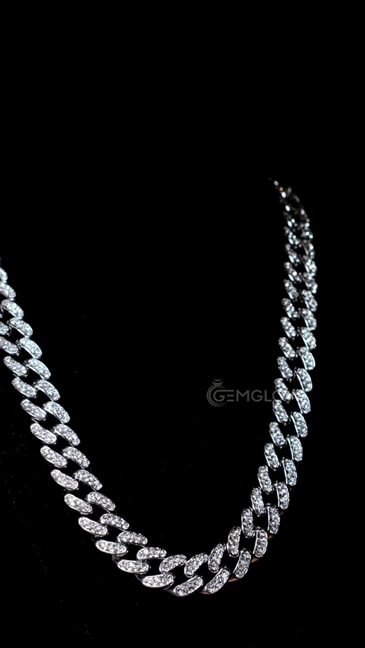 Rapper Miami Cuban chain with round cut moissanite diamonds. Luxury iced out necklace, bold hip hop style, perfect gift for her or a special occasion.