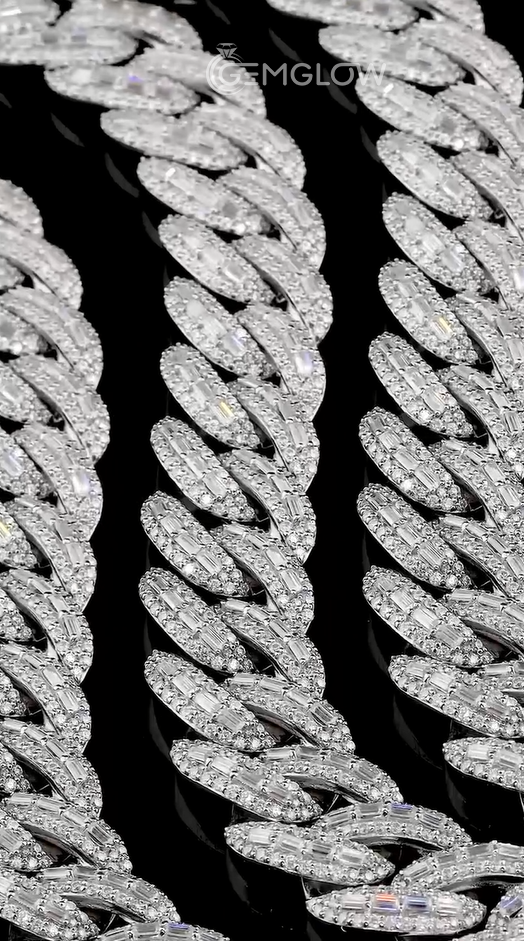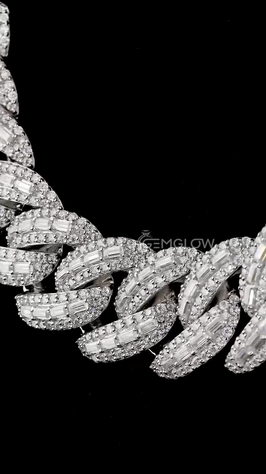 Iced out Miami Cuban chain with 𝗿𝗼𝘂𝗻𝗱 & 𝗯𝗮𝗴𝘂𝗲𝘁𝘁𝗲 𝗺𝗼𝗶𝘀𝘀𝗮𝗻𝗶𝘁𝗲. Bold 𝗵𝗶𝗽 𝗵𝗼𝗽 𝗻𝗲𝗰𝗸𝗹𝗮𝗰𝗲 𝗳𝗼𝗿 𝗺𝗲𝗻 perfect for 𝘀𝘁𝗿𝗲𝗲𝘁𝘄𝗲𝗮𝗿, 𝗽𝗮𝗿𝘁𝗶𝗲𝘀, or daily drip with serious shine.