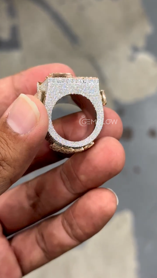 VVS Moissanite Trap House Ring, Luxury Hip Hop Jewelry, Rappers Ring, Round & Baguette Moissanite Hip Hop Ring, Trap House Ring for him, Men's Ring, Custom Ring, Fully Iced Out Hip Hop Jewelry, Moissanite Hip Hop Ring, 925 Sterling Silver, Champion Ring, Rose Plated Trap House Ring