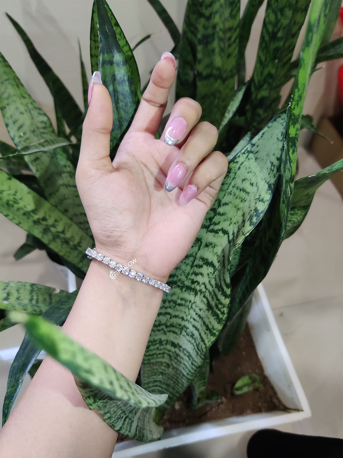 4mm lab grown diamond 𝘁𝗲𝗻𝗻𝗶𝘀 𝗯𝗿𝗮𝗰𝗲𝗹𝗲𝘁 with 𝗿𝗼𝘂𝗻𝗱 𝘀𝘁𝗼𝗻𝗲𝘀. Sleek, sparkling 𝗱𝗲𝘀𝗶𝗴𝗻 𝗳𝗼𝗿 𝗺𝗲𝗻 𝗼𝗿 𝘄𝗼𝗺𝗲𝗻 perfect everyday piece or gift with clean shine.